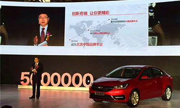 Čerijev 5.000.000-ti automobil sišao je sa proizvodne trake, čime je postao prvi kineski proizvođač automobila sa kumulativnom proizvodnjom putničkih vozila od preko 5.000.000 jedinica.